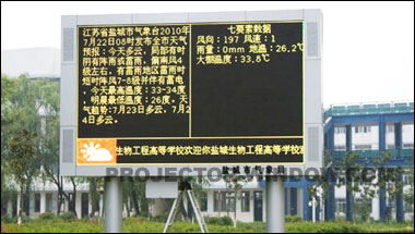 日前,LED顯示屏進入鹽城生物工程高等學校氣象觀測示范基地,其可以通過GPRS接收顯示天氣預報、預警信息、自動觀測站實時數據等,由北京振鵬世紀承制。校園氣象觀測示范基地裝有人工觀測設備和觀測風向(速)、溫度、濕度、雨量、地溫和大棚溫度等7要素自動觀測設備,觀測場擁有一套綜合利用風能、光能的風光互補綠色獨立電源系統。其運行將為高校學生學習氣象,實際運用到農業方面提供實踐平臺。