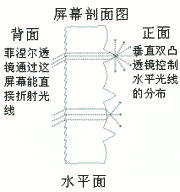 dnp新廣角屏幕是光學(xué)單層屏幕,帶有2個(gè)有效透鏡表面。靠投影機(jī)一側(cè)的高精度菲涅爾透鏡有聚光鏡的功能:匯聚投影光線并將其延直角傳送至屏幕。屏幕上的漫射物質(zhì)控制垂直光線的分布;屏幕正面良好的點(diǎn)距雙凸透鏡可將高分辨率圖像分布在180°水平視覺范圍上。 |