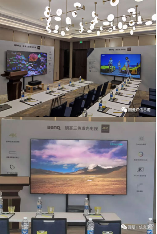 展廳現場展示了4K激光電視新品 i930L i985L,產品經理霍琦對激光電視做了詳細的介紹。