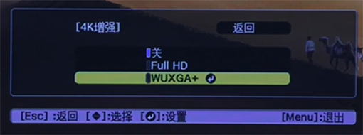 在【圖像】中找到【圖像增強(qiáng)】,選擇【4K增強(qiáng)】,我們會(huì)看到三個(gè)選項(xiàng),分別是【關(guān)】【Full HD】【W(wǎng)UXGA】。