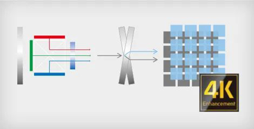 4K增強功能默認開啟。4K增強功能可將像素點沿對角線方向位移0.5個像素使分辨率翻倍,清晰度超越了全高清的圖像質量。