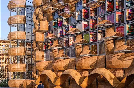 菲律賓館,以“自然、文化與社區:編織更美好未來”為主題,巧妙地將傳統編織藝術與綠色建筑理念相結合,將菲律賓群島豐富的文化多樣性展現與輕松歡樂的游客互動相結合,提供了別開生面的一場建筑、自然與文化的體驗。