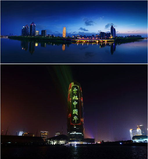 鄭州“大玉米”燈光秀夜晚,280米的城市新地標散發出迷人的色彩。燈火輝映下,共采用36臺NEC雙色激光4K工程投影機,在“中原第一高樓”之上勾勒出“新年倒計時”、“嵩山”、“幸福中國年”喜慶又富有濃郁地域特色的內容,為市民和游客呈現了一場精彩的跨年夜活動。