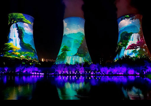 4萬流明4K雙色激光旗艦級工程投影機,開創性地以近百米發電廠冷卻水塔為背景,在超過10000平方米的高塔“屏幕”上,演繹了一場氣勢恢宏的傳奇劇目。