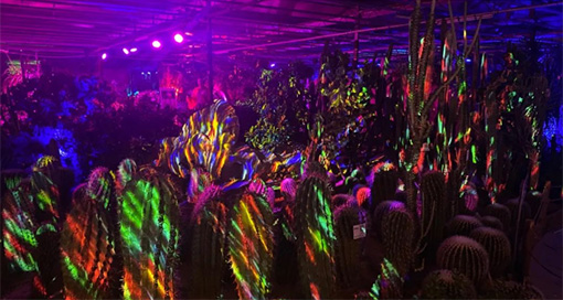 移步換景,在熒熒星光的追隨下,行至沙漠植物館。在林立的麒麟掌中駐足,捕捉游走在沙地的斑斕光影,感受真實與虛幻的神奇碰撞。
