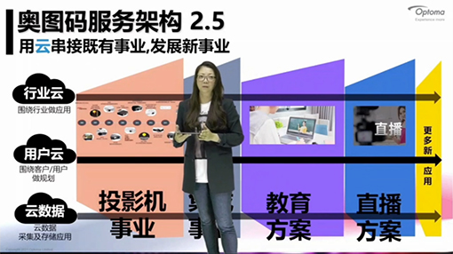 有了云端的加入,奧圖碼的整體布局也升級到2.5版本。不同于以往強調的“不止做產品、核心在服務”,云布局下的解決方案是緊扣時代發展、迎合時代需求的服務。