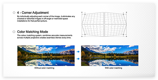 關(guān)于四角調(diào)整和影像融合,為達到沉寂式環(huán)繞畫面的呈現(xiàn)效果,設(shè)計師對劇本影片的呈現(xiàn)效果,尤其是環(huán)繞畫面的呈現(xiàn),拼接融合的效果以及便捷的調(diào)教都有強烈的需求,EL400HST也正是以其優(yōu)勢完美解決這些需求。