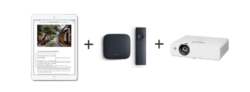 通過松下無線模塊鏈接iPad與投影機(jī),實(shí)現(xiàn)聲畫投屏,點(diǎn)擊圖片可獲取詳細(xì)使用教程。
