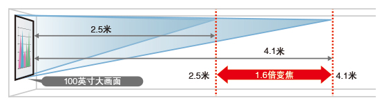 PT-BW410C投影機(jī)投影100英寸大畫面時(shí), 1.6