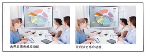 強光感應功能利用內置光線傳感器實時監測環境照明度并實時調節投影圖像亮度和色調,使以往在明亮環境中難以看清的暗部區域細節都可清晰。