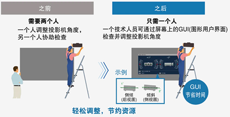 PT-FEQ150C/CL工程投影機內置角度監視器,在安裝時可通過陀螺儀檢測機身角度變化,并將該信息顯示在設置菜單中,僅需一位技術人員就可完成投影機角度的調整。