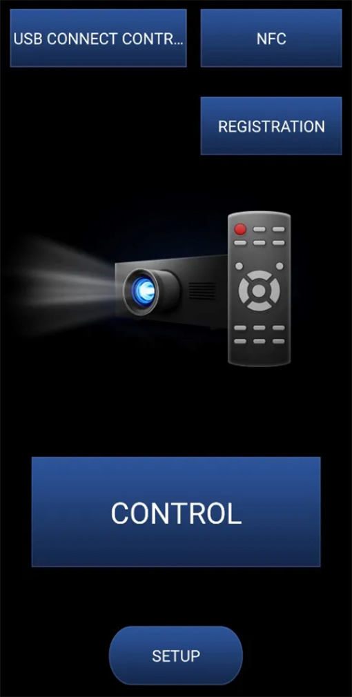 無線網絡配置成功后,我們就可以通過App主界面中的[Control]來操控投影機啦! |