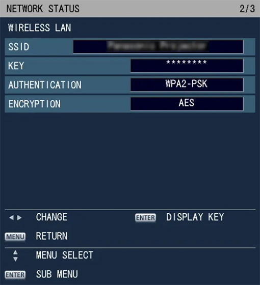 進入“NETWORK STATUS”界面,切換子菜單頁,“WIRELESS LAN”界面顯示無線SSID