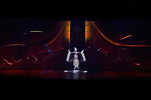 伴隨著劇幕緩緩拉開,現場觀眾猶如置身亦真亦幻的時空隧道,夢回春秋戰國時期傳奇楚國。通過多組復雜的投影融合,Vivitek(麗訊)激光工程投影機瞬間將劇場打造為巨型的沉浸式空間,與古樂、演員配合的絲絲入扣。