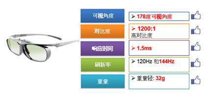 更加值得一提的是,在活動期間免費(fèi)贈送購買者的ViewSonic新一代3D眼鏡。相比目前體重在40-50克之間的主流3D眼鏡,ViewSonic新一代3D眼鏡不僅擁有32克的輕盈身軀,更采用了針對DLP投影機(jī)所設(shè)計的LCD增強(qiáng)型鏡片,能夠完美支持1080P全高清分辨率,可為佩戴它的觀看者提供178度超寬可視度,讓家居觀影不用再受位置限制。同時,它還能提供小于1.5毫秒的響應(yīng)時間以及1200:1的對比度,保證了高速勁爆的大片場景不會出現(xiàn)重影、鬼影等現(xiàn)象,真正讓觀看者通過超大熒幕觀看3D投影畫面成為一種享受。